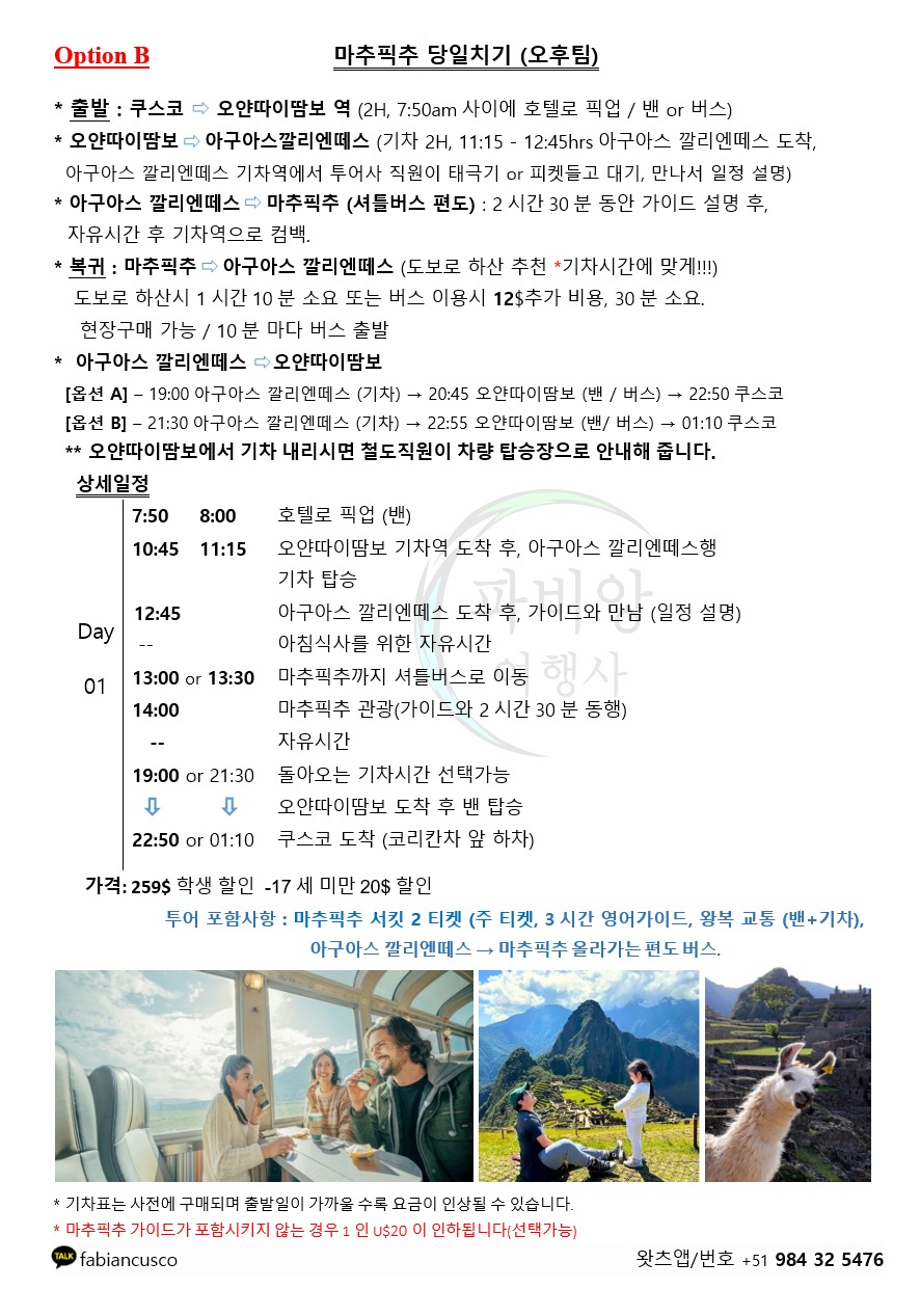 이 상품의 장점은 하루안에 마추픽추를 구경하실 수 있으며